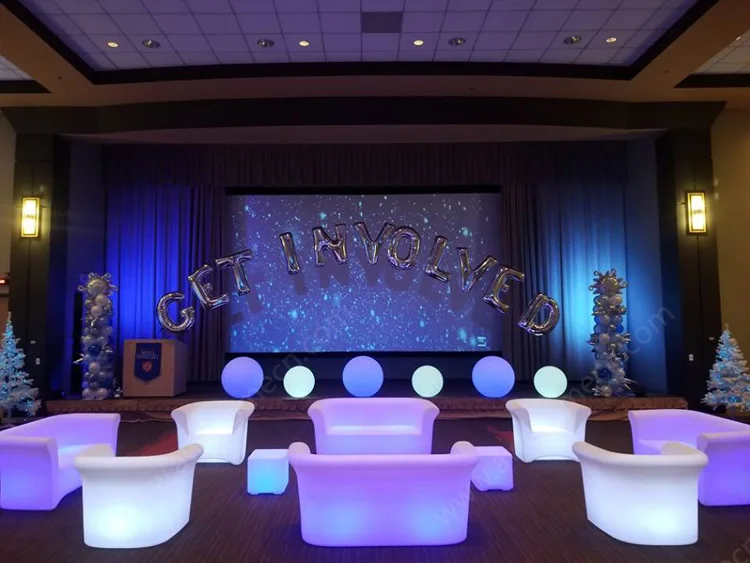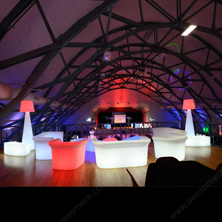 Luxury Plastic Sitting Room Furniture Glowing Luminous Illuminated Led Recliner Sofa Set for Nightclub Garden Event Party